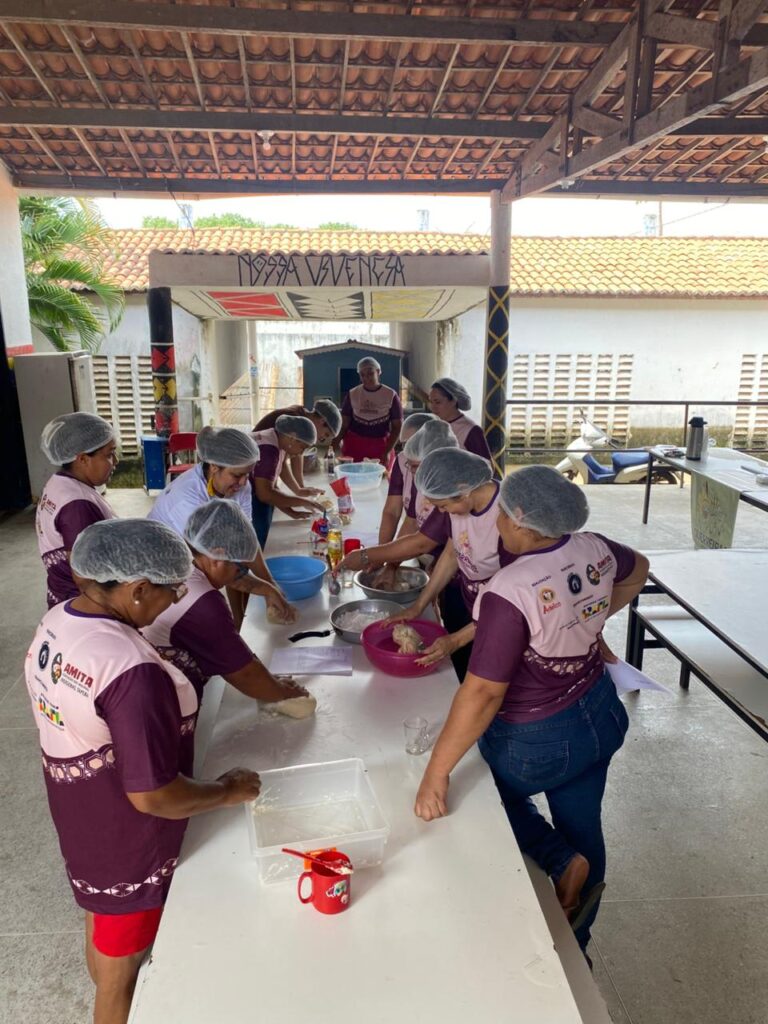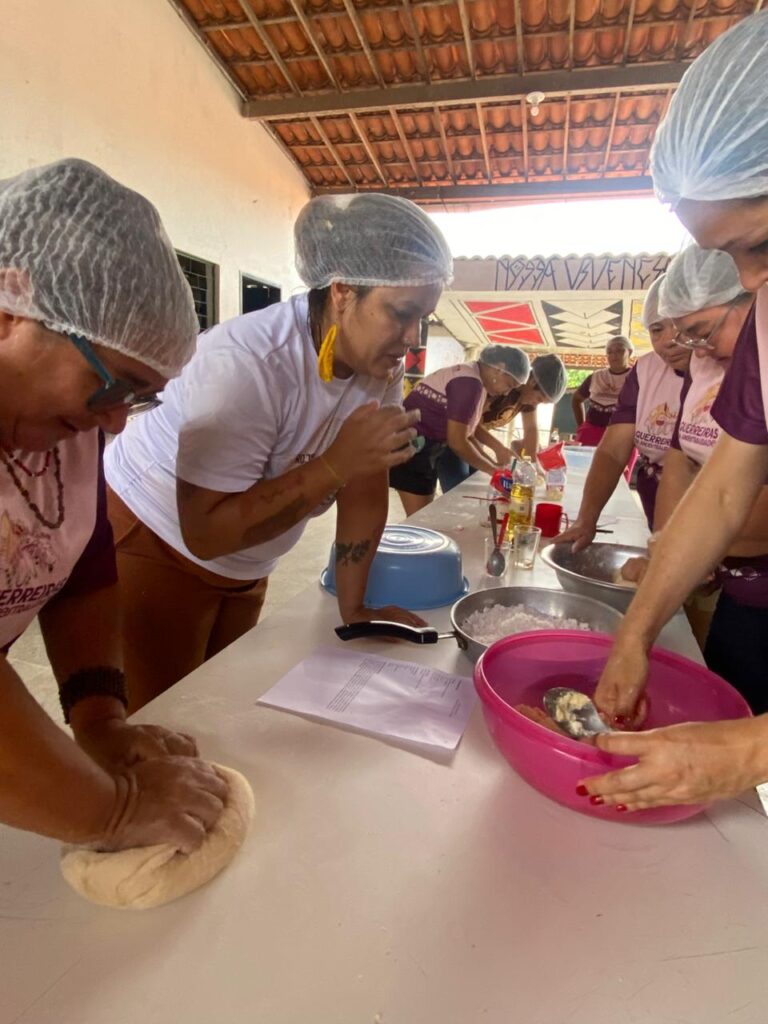 Mulheres da Aldeia Japuara, do povo indígena Anacé, em Caucaia (CE), participaram de uma oficina de culinária que marcou o encerramento de um ciclo formativo voltado para fortalecer os saberes e valorização da autonomia. Essa última atividade da turma T4 – JAPUARA aconteceu no dia 14 de março, e fez parte da programação de formação do projeto Guerreiras da Ancestralidade, que traz como propósito incentivar a autonomia econômica das mulheres por meio de práticas produtivas e do compartilhamento de conhecimentos. A oficina foi facilitada por Daniele Jucá.
