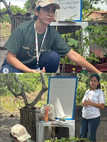 As oficinas contam com a participação ativa das mulheres, reforçando o protagonismo feminino na condução dessas iniciativas. E foi ministrada pelas técnicas Marina Porto e Emanuelle Rocha, que compartilharam conhecimentos e orientações fundamentais para a implementação dos quintais.